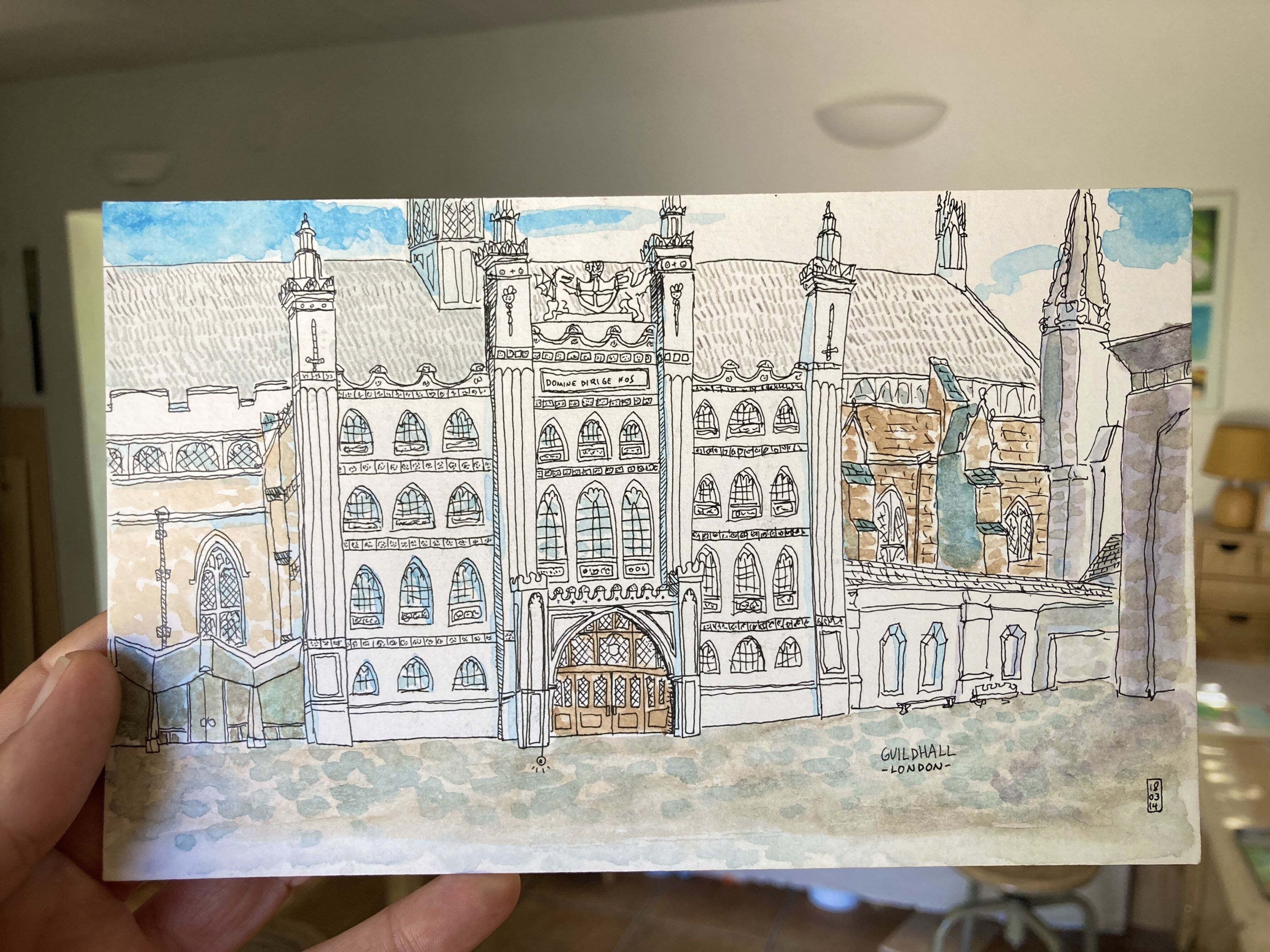Una acuarela realizada del natural del emblemático edificio Guildhall en Londres. Pieza clásica del 2014.