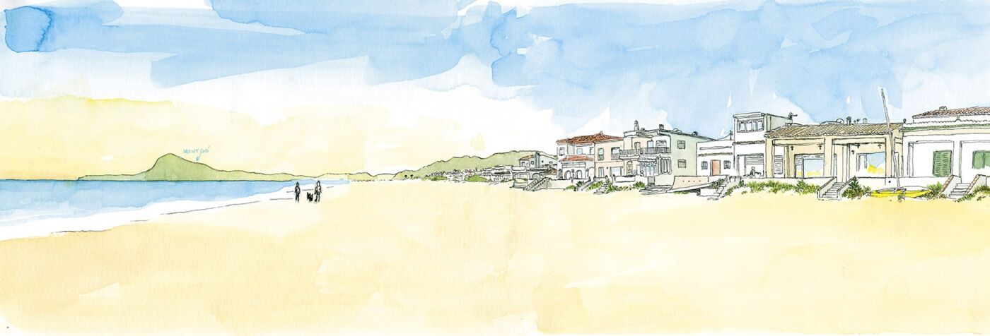 Print of my illustration First line beach in Oliva. This artwork is made with museum quality paper and archival pigmented inks.