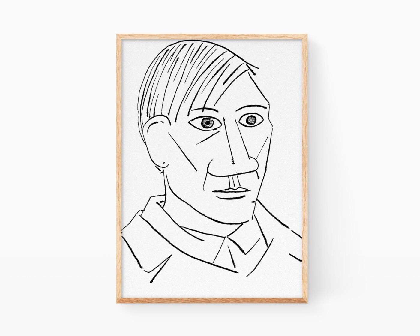 Handmade signed print with a version of Pablo Picasso's cubist self-portrait. Drawing originally done in ink on paper.