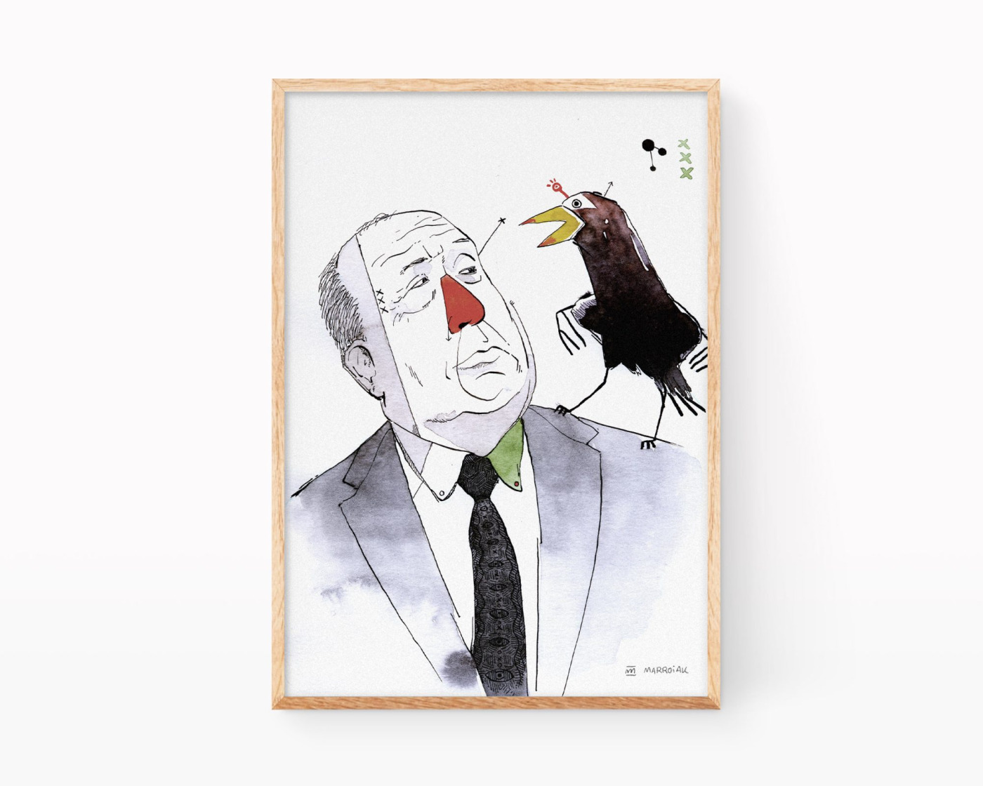 Alfred Hitchcock. Lámina retrato ilustrado