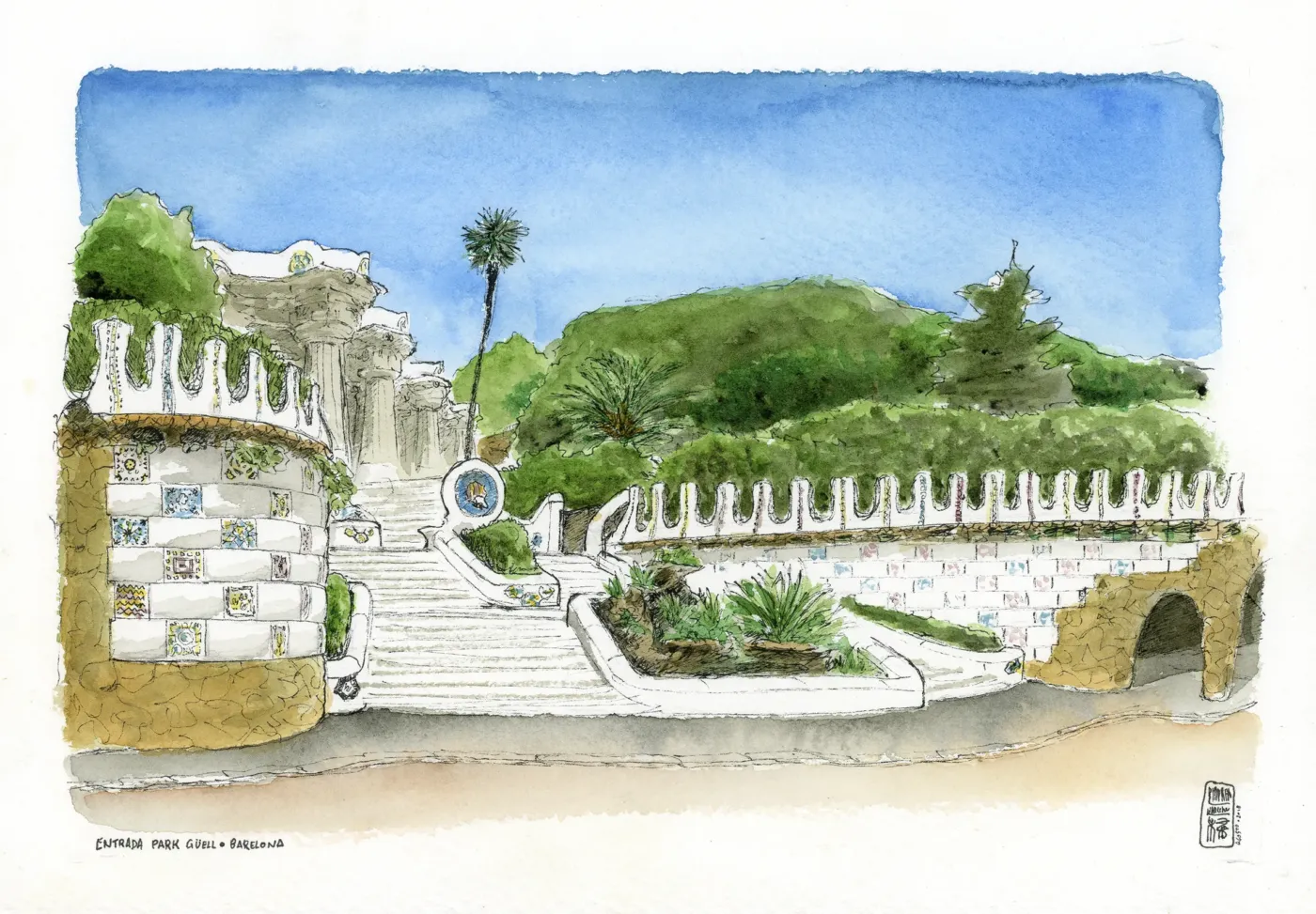 Esta ilustración original es del verano de 2013. Un boceto realizado del natural (estaba allí mientras lo hacía) que pertenece a una colección de acuarelas de Barcelona que realicé durante una estancia de un mes. Está firmada con mi nombre.