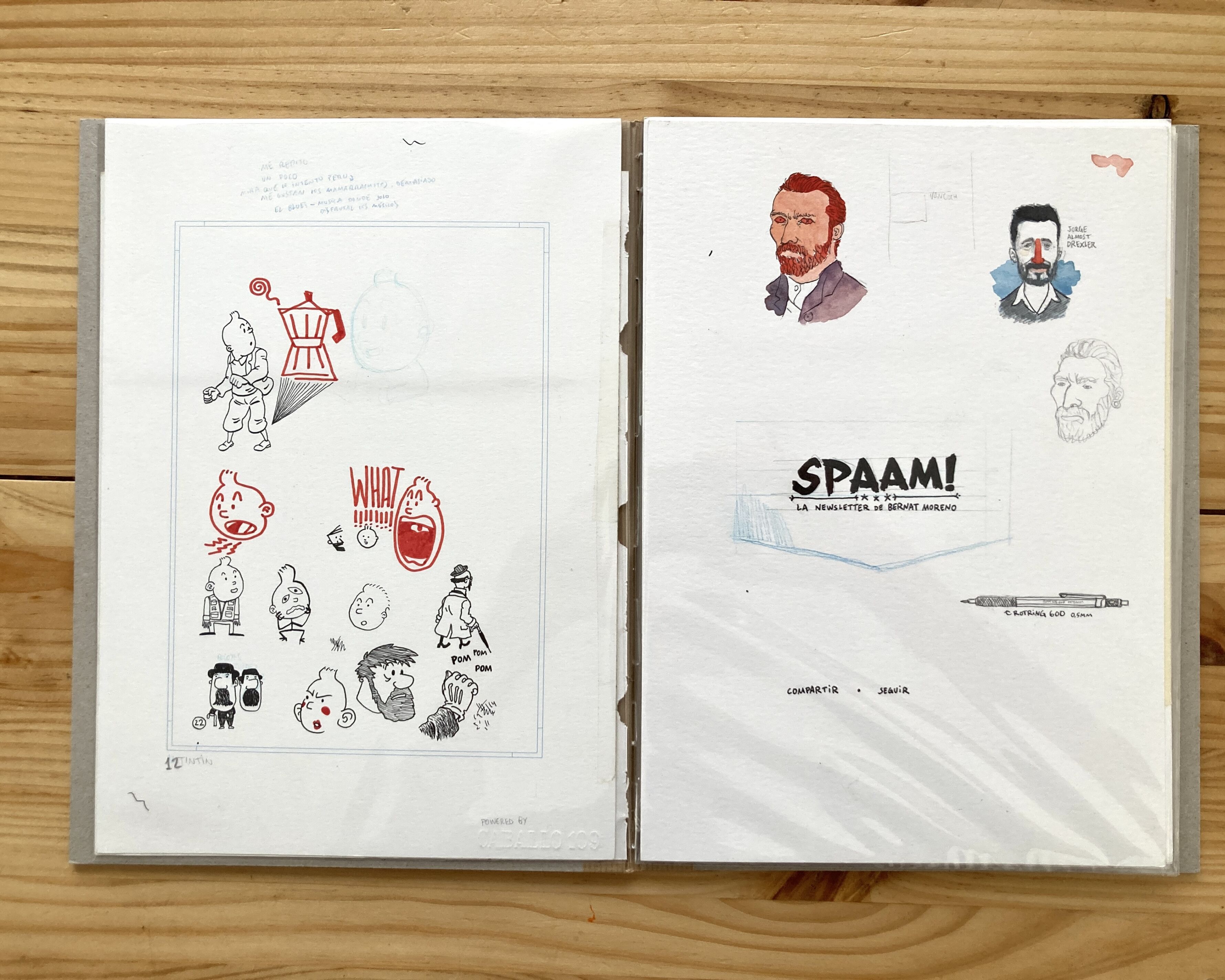 Un cuaderno donde encontrarás 10 bocetos únicos y originales convenientemente protegidos con fundas transparentes. Algunos son muy antiguos (de mi época de estudiante) y algunos otros son más actuales.