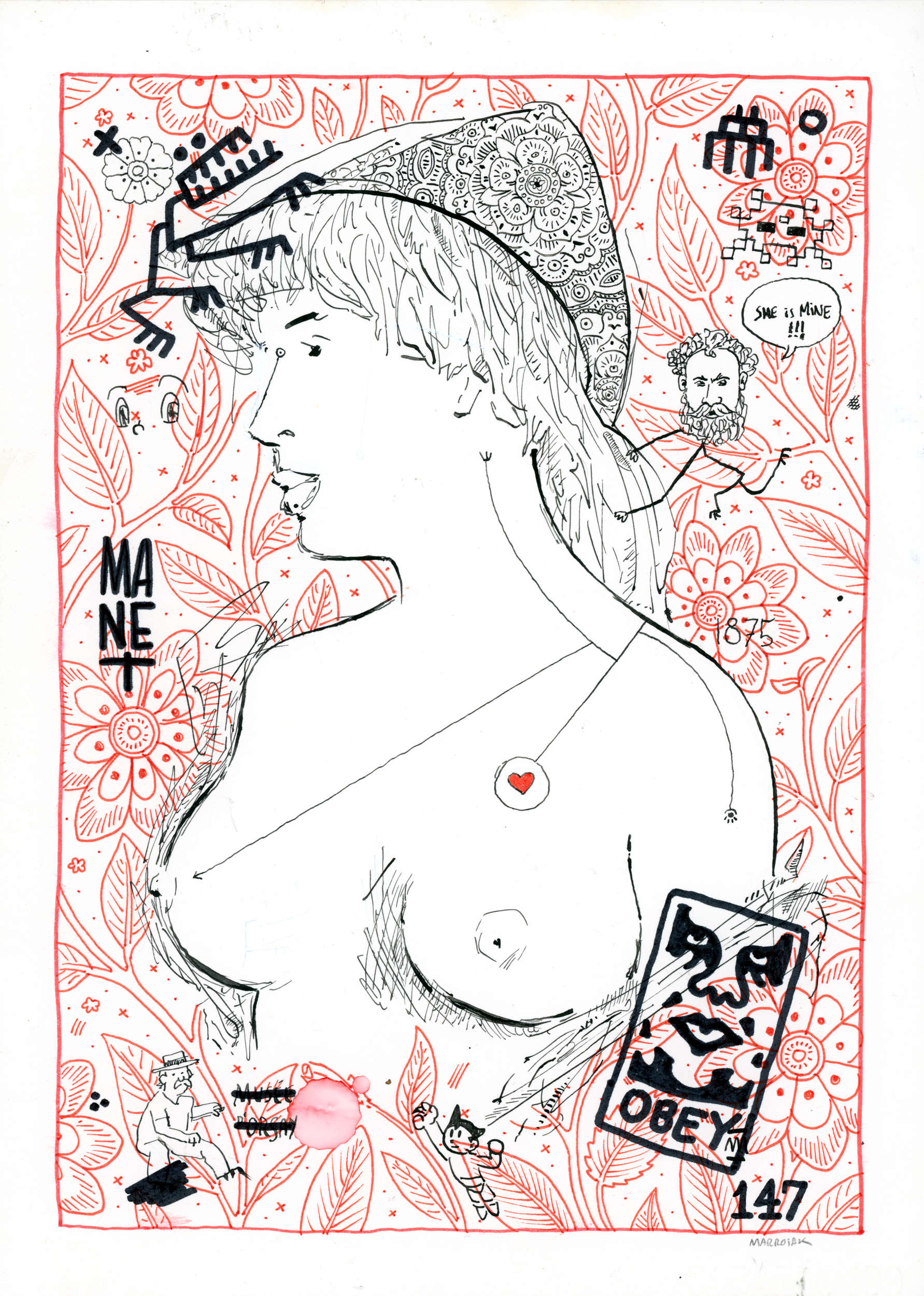 Una versión de la conocida obra La rubia del seno desnudo de Manet con varios guiños al artista urbano Obey, al personaje de cómic Astroboy y la saga de videojuegos Space Invaders.