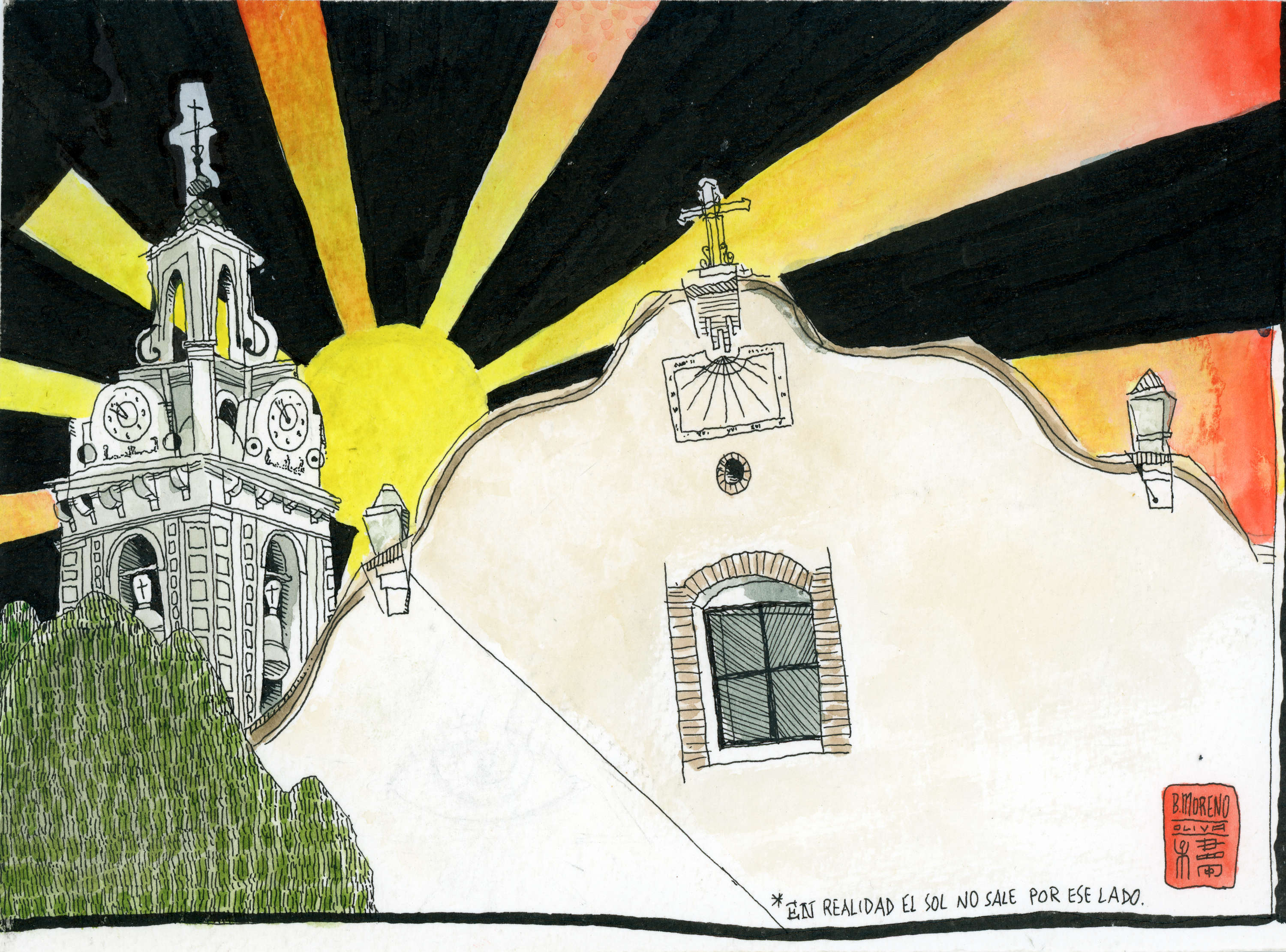 Una pieza única sobre la iglesia de Santa Maria en Oliva, elaborada con tintas y acuarela sobre papel.