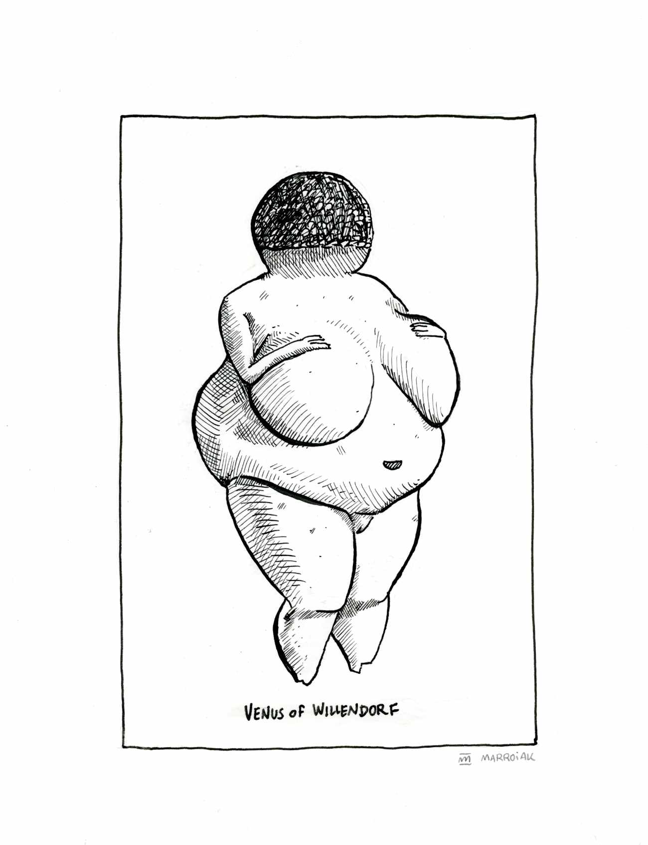 Venus de Willendorf es una reinterpretación de la escultura paleolítica con el mismo nombre que data del año 25 000 a.C. Un símbolo de la feminidad, la fertilidad y de la Madre Tierra.
