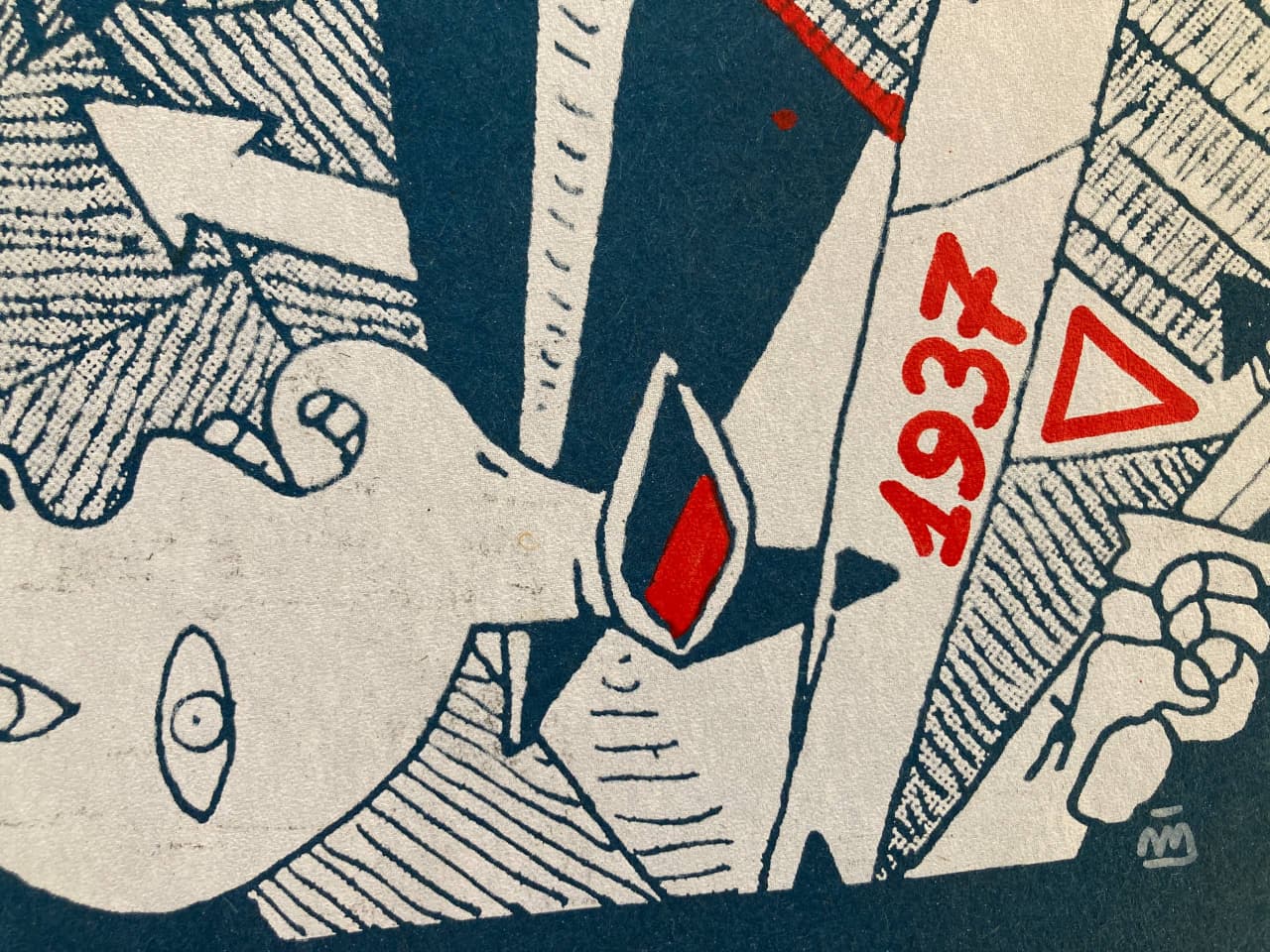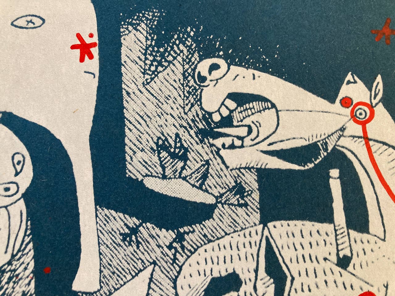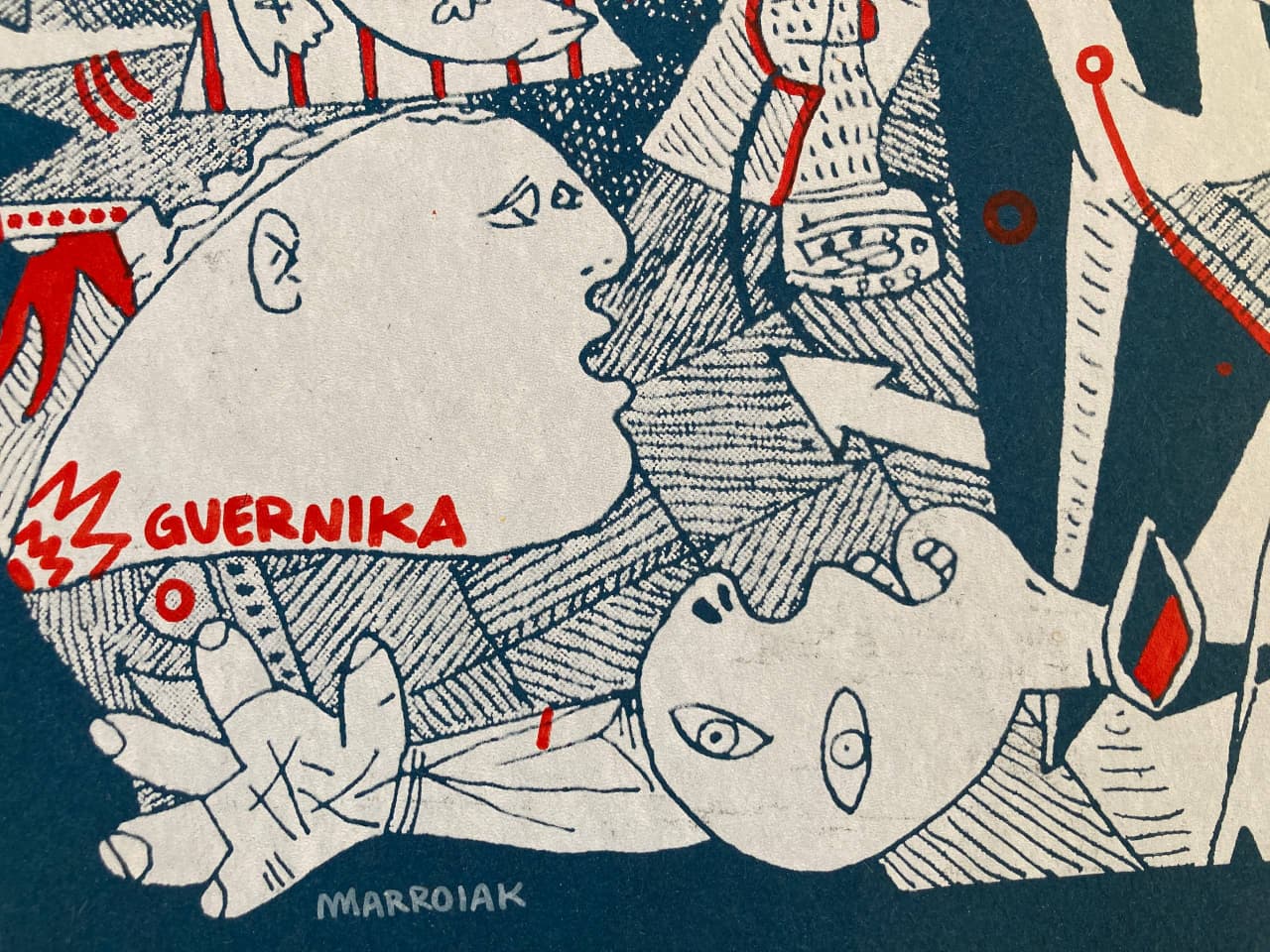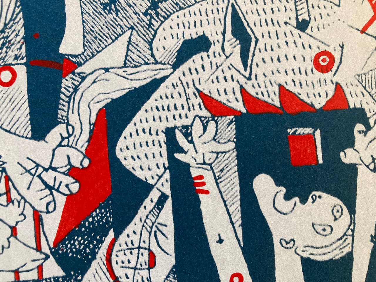 Una versión del Guernica de Picasso realizado con serigrafía y customizado con tinta roja.